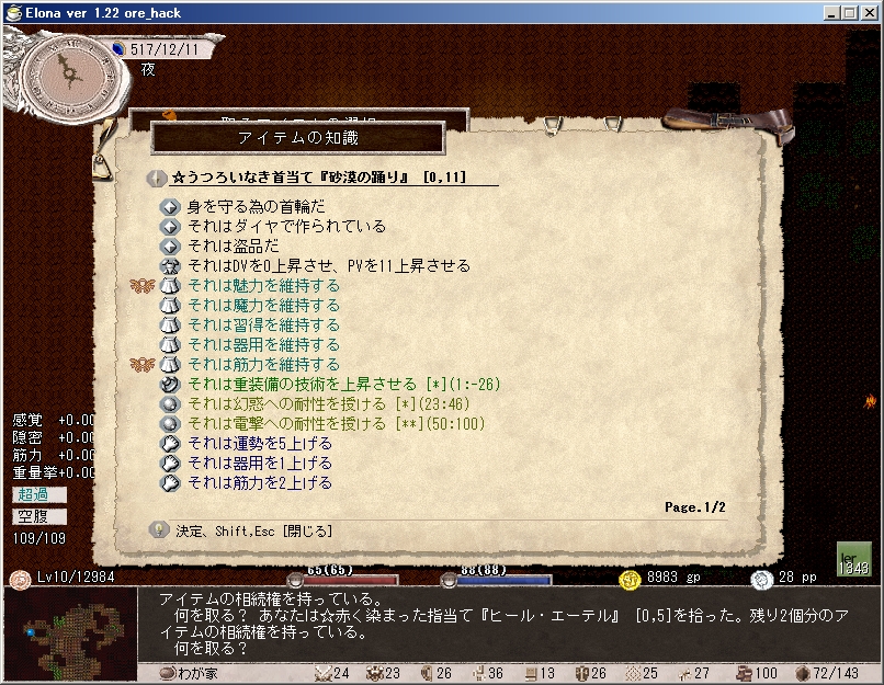 各種能力ボーナスとステータス保護がおいしい首飾り(エイミミー用)、