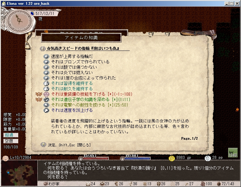 速度ボーナスが一番大きかったスピードの指輪(エイミミー用)。