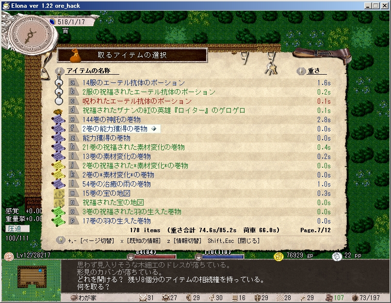 能力獲得の巻物を合計3巻(うち1巻は盗品)を引き出し