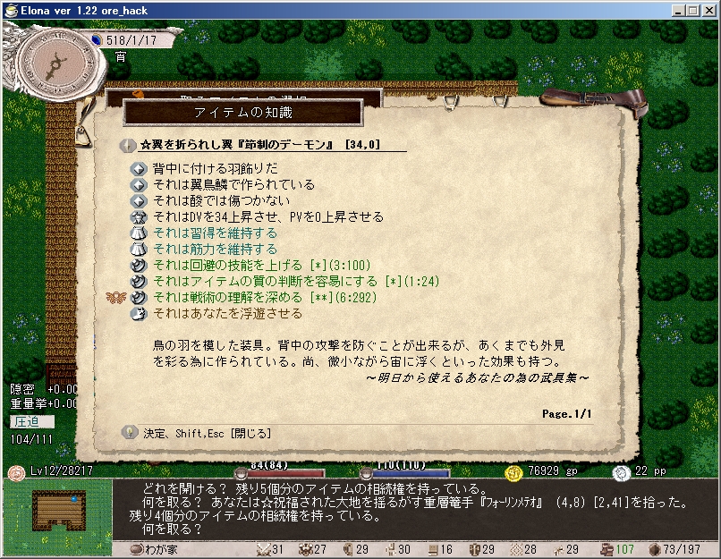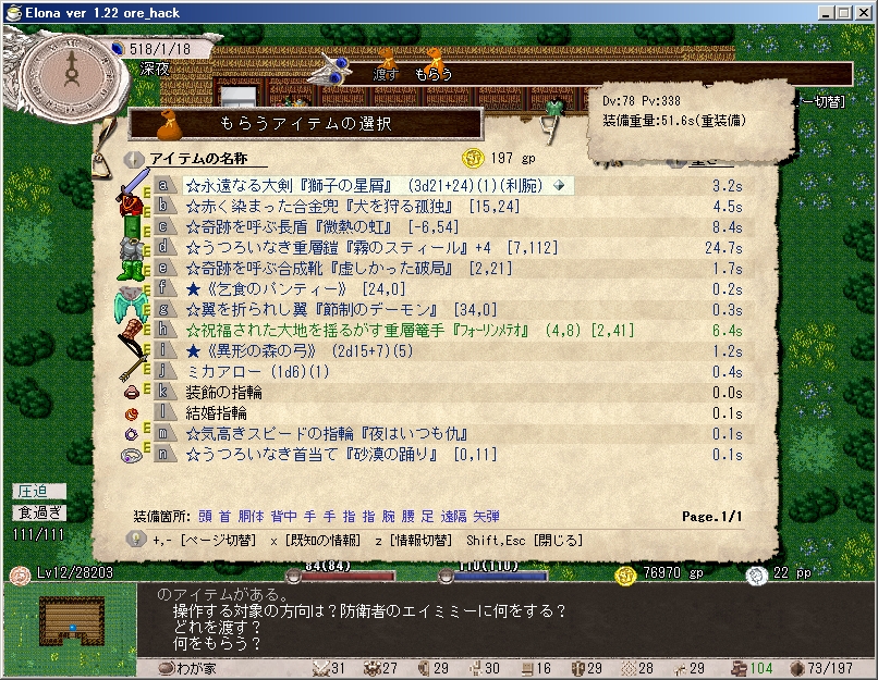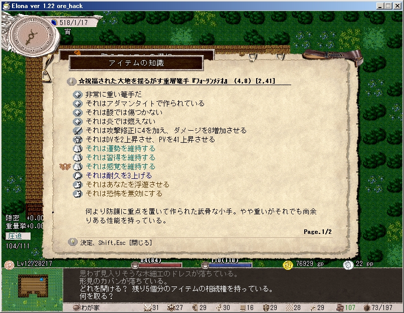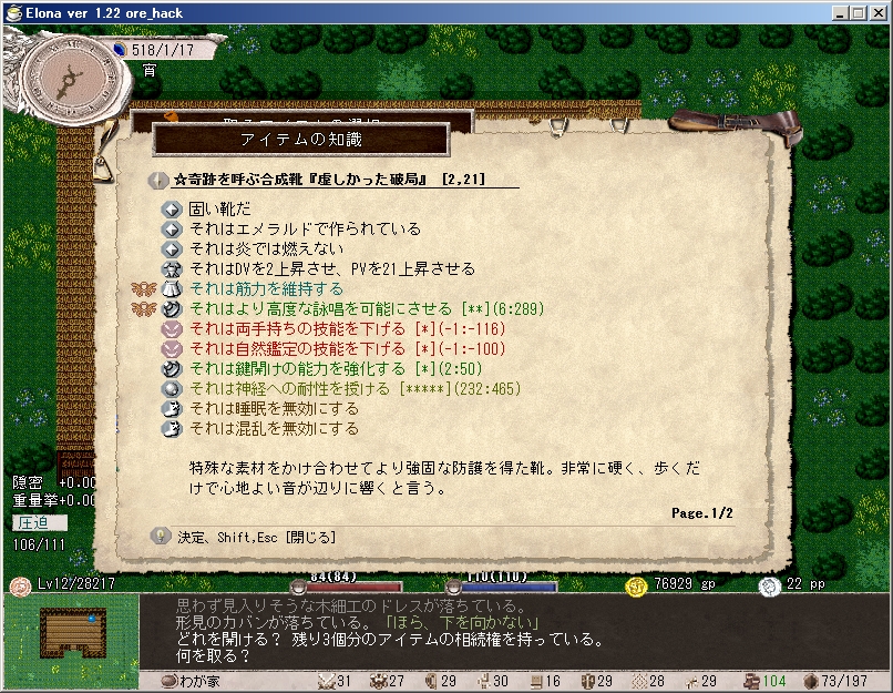 ようやく★乞食のパンティー(ore_hack追加アーティファクト)ゲット。
