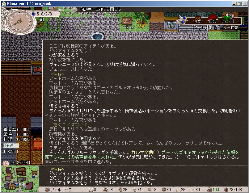 そうするとプレイの苦しさでelonaに飽きてしまいそう)
