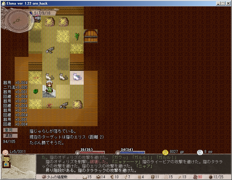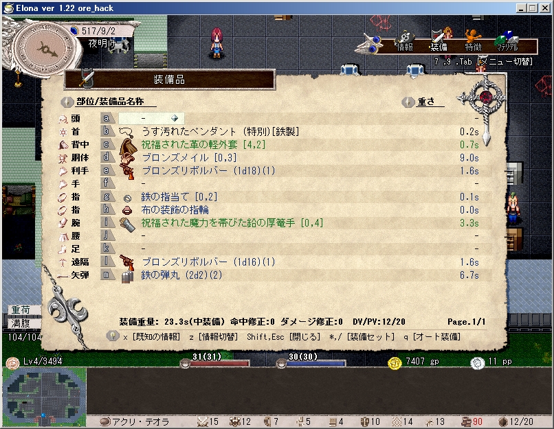 えろーなー。テデリアちゃんです。ore_hackの追加機能・二丁拳銃を満喫したいなーと思って作ったキャラですがせっかくなので軽く防衛者プレイをしたいなーと思ってます。(聖なる盾・リジェネレーション・治癒の雨以外の魔法は極力禁止)冒険者wikiへの登録は、おいおい。